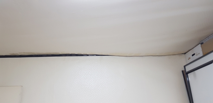 곰팡이로 누수된 천장의 벽지도배까지 말끔히 작업을 하였어요~