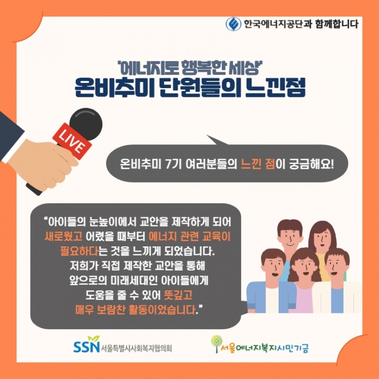 '에너지로 행복한 세상'은 서울시민 및 에너지 취약계층인 아동과 청소년을 대상으로 하는 사업으로, 온오프라인 교육과 체험 프로그램을 통해