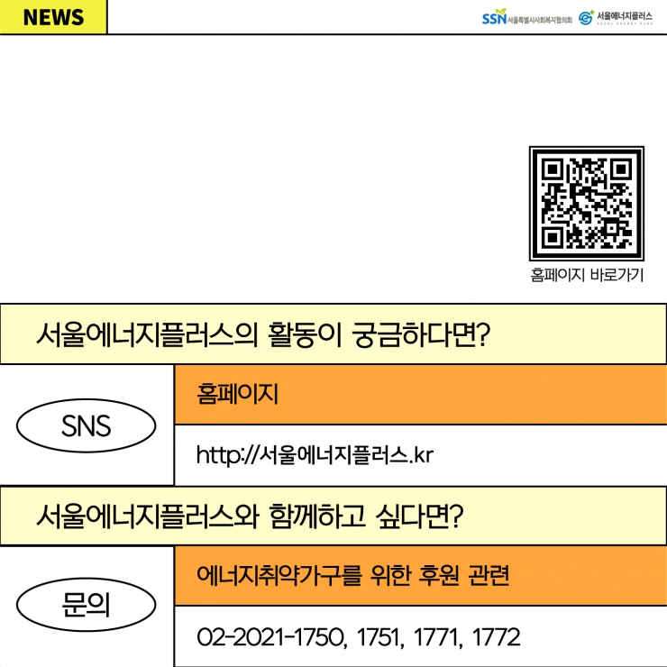 2023 한파대비 긴급 모금 | 서울이 온다(温多) 급격히 추워진 날씨가 느껴지는 요즘입니다. 매서운 한파에 보일러 등 난방이 필요하지만 각종 공과금 인상으로 인해 추위를 고스란히 느끼고 있는 에너지취약가구 서울시사회복지협의회에서는 기업과 개인의 후원으로 에너지취약가구에게 따뜻한 겨울을 선물합니다. 우리의 관심이 모여, 함께 따뜻한 서울 만들기! 서울이 온다(温多) 에너지취약가구의 든든한 서포터즈가 되어 주세요! |
