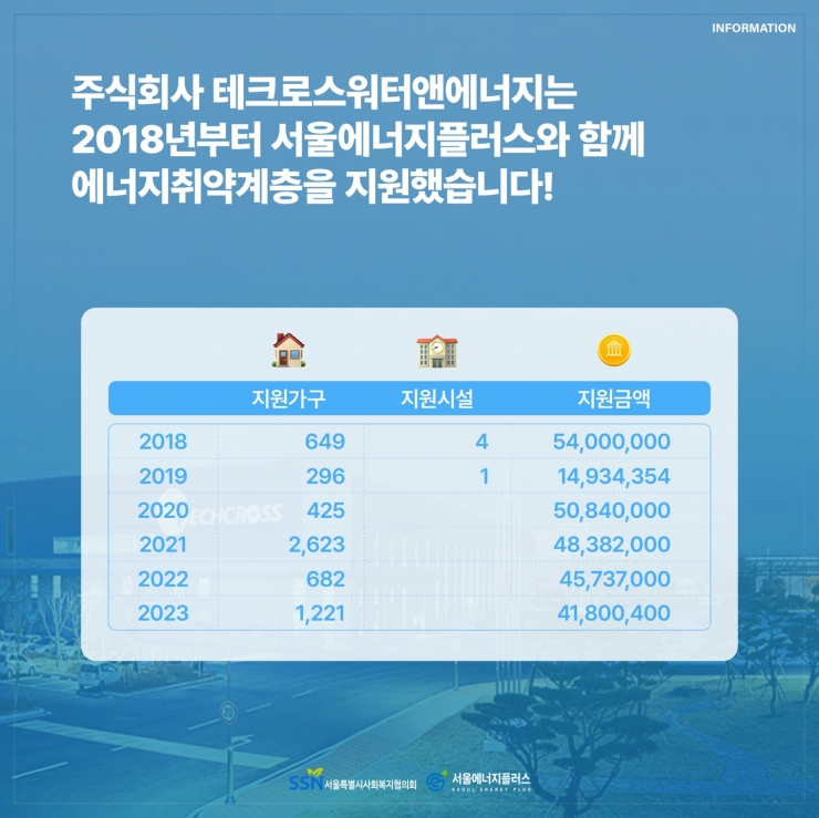 기술과 사람의 융합을 통해 인류와 환경에 기여하는 기업, 주식회사 테크로스워터앤에너지와 함께한 2024 성동구 주민발전기금 지원사업 소식입니다! 주식회사 테크로스워터앤에너지는 2018년부터 에너지취약계층을 지원하였습니다! 올해까지 이어진 지원! 2024년 성동구 주민발전기금 지원사업 계획, 카드뉴스를 통해 살펴보아요! |
