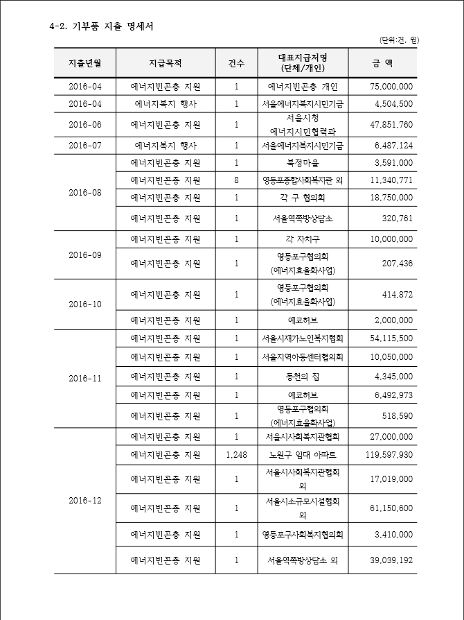 2016년 후원 결산