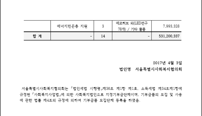 2016년 기부금품 모집 완료 보고 입니다.