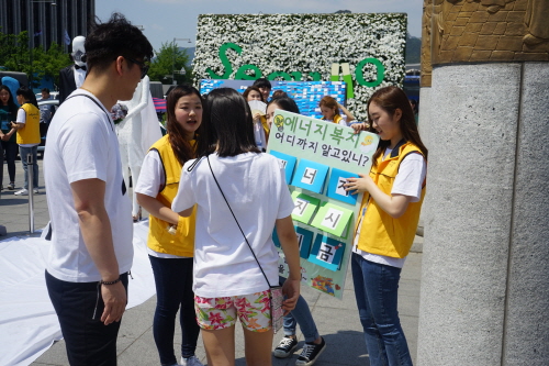 2017년 5월 27일 서울환경교육한마당, 미세먼지 서울시민 대토론회 ![]() ![]() 온비추미 서포터즈들은 시민들을 대상으로 환경을 다시한번 생각할 수 있는 에너지 관련 퀴즈를 진행하고 에너지취약계층을 위한 에너지 희망문자보내기 문자 1건당 2,000원 후원을 홍보하였습니다 친절하게 시민들에게 문자홍보를 알리는 비추미 친구들과 비추미 친구들의 설명을 듣고 참여하는 시민분들이 있기에 에너지취약계층에게 희망을 전달하였습니다 ![]() ![]() ![]() 마지막으로, 서울시민 미세먼지 대토론회를 통해 미세먼지의 심각성을 알리고 서울시민들의 지혜를모아 해결방안을 통해 맑은 하늘을 만날 수 있는 날이 오기를 바래봅니다. 앞으로 온비추미는 다양한 활동이 있으니 기대해주세요. |
