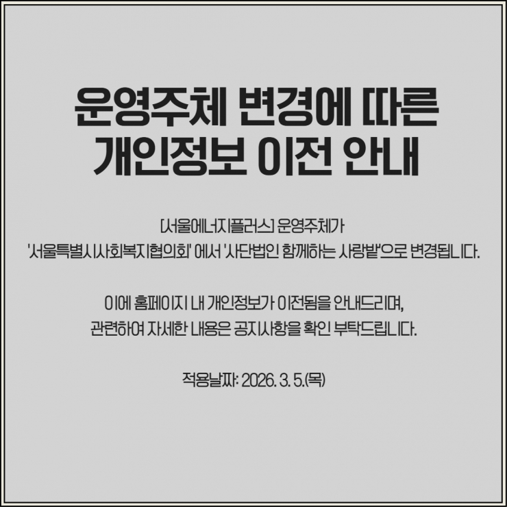 [서울에너지플러스] 사업 운영기관 변경에 따른 홈페이지 내 개인정…